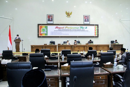 Dewan Perwakilan Rakyat Daerah (DPRD) Kabupaten Indragiri Hilir gelar Rapat Paripurna Istimewa dalam rangka usulan Rekomendasi DPRD terhadap Laporan Keterangan Pertanggungjawaban (LKPJ) Bupati Inhil tahun anggaran 2022 pada Ruang Rapat Paripurna DPRD, Tembilahan, Rabu, (26/04 /2023).