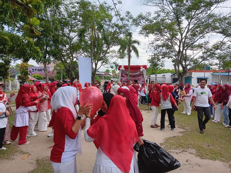 SIAK HULU- Meriahkan HUT ke-80 RI, ratusan warga RW 03 Taman Duta Mas antuasias mengikuti jalan santai yang ditaja Pemuda-Pemudi Taman Duta Mas, Minggu(17/8) pagi.Jalan santai yang mengambil start dan finish di Bundaran Utama Taman Duta Mas, dengan melewati rute-rute di VII Rukun Tetangga (RT) di kawasan Perumahan Taman Duta Mas berlangsung sangat meriah dan tertib.
